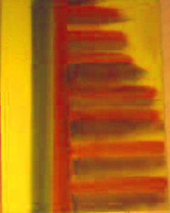Having assimilated the classic–and some not so classic–concepts of representation from the life, with the disciplines of drawing, painting and sculpture, I transmuted my interest, orienting it exactly towards expression through color, fi xing pure pigments with touches of latex and water on unprepared canvases primed with sealer on the back.